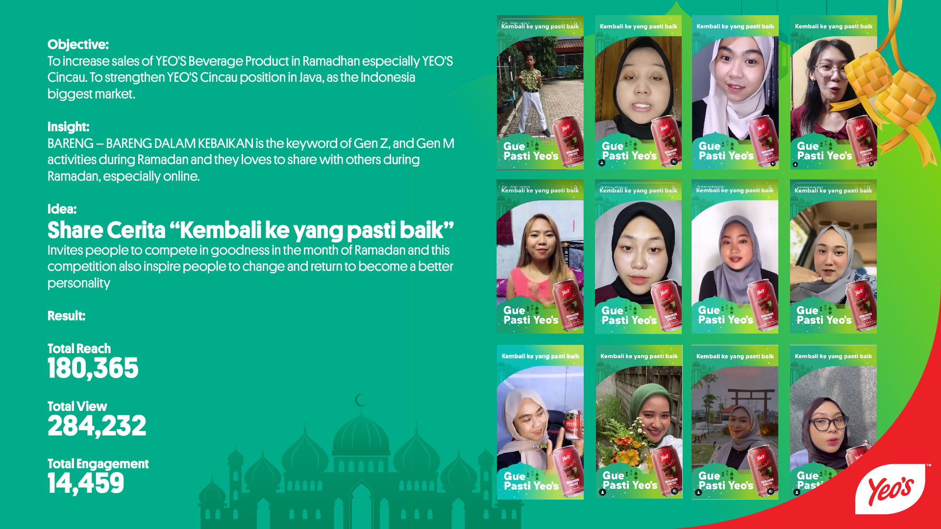 To increase sales of YEO'S Beverage Product in Ramadhan especially YEO'S Cincau. To strengthen YEO'S Cincau position in Java, as the Indonesia biggest market.